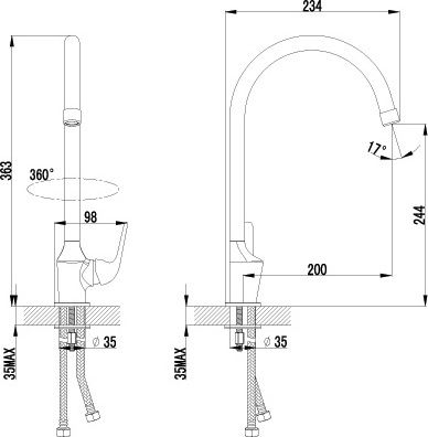 поворотному изливу смеситель может использоваться для мойки с двумя