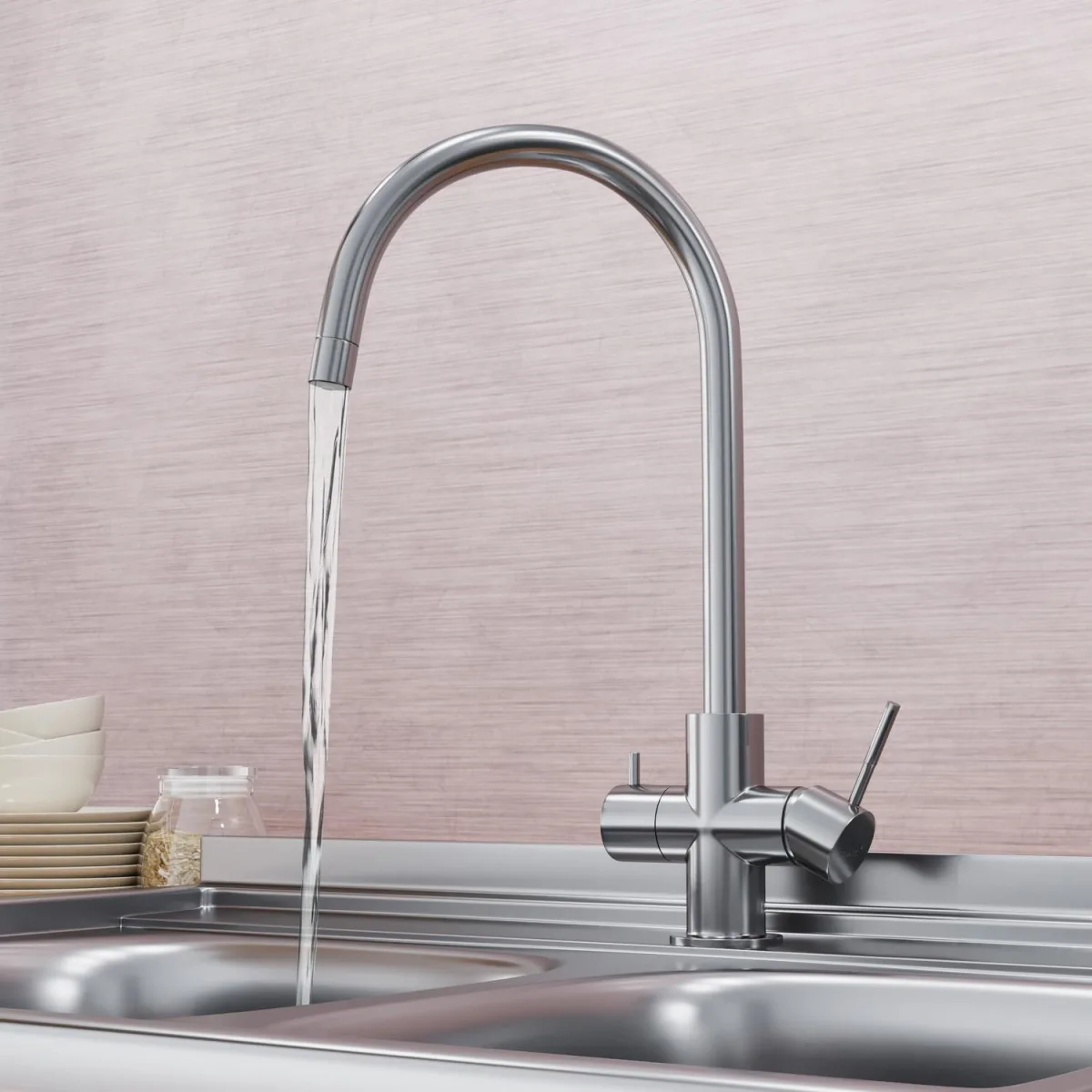 совмещенный излив для фильтра, возможность присоединения фильтра для воды