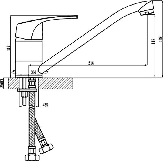 брызг. Смеситель Rossinka устанавливается на мойку или столешницу.