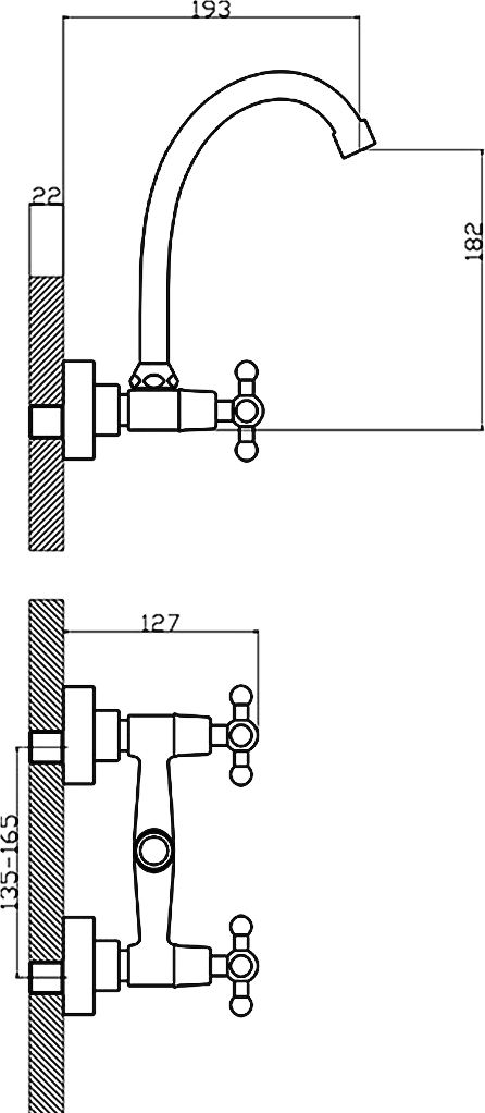 Утонченный с-образный излив, удобные крестообразные маховики и