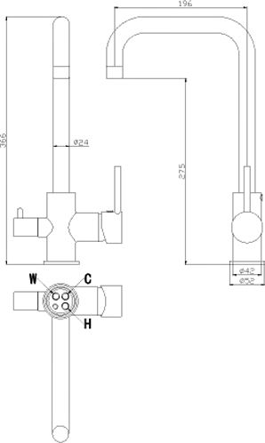 поворота 90°) и отвечает за подачу питьевой воды. Правая, с