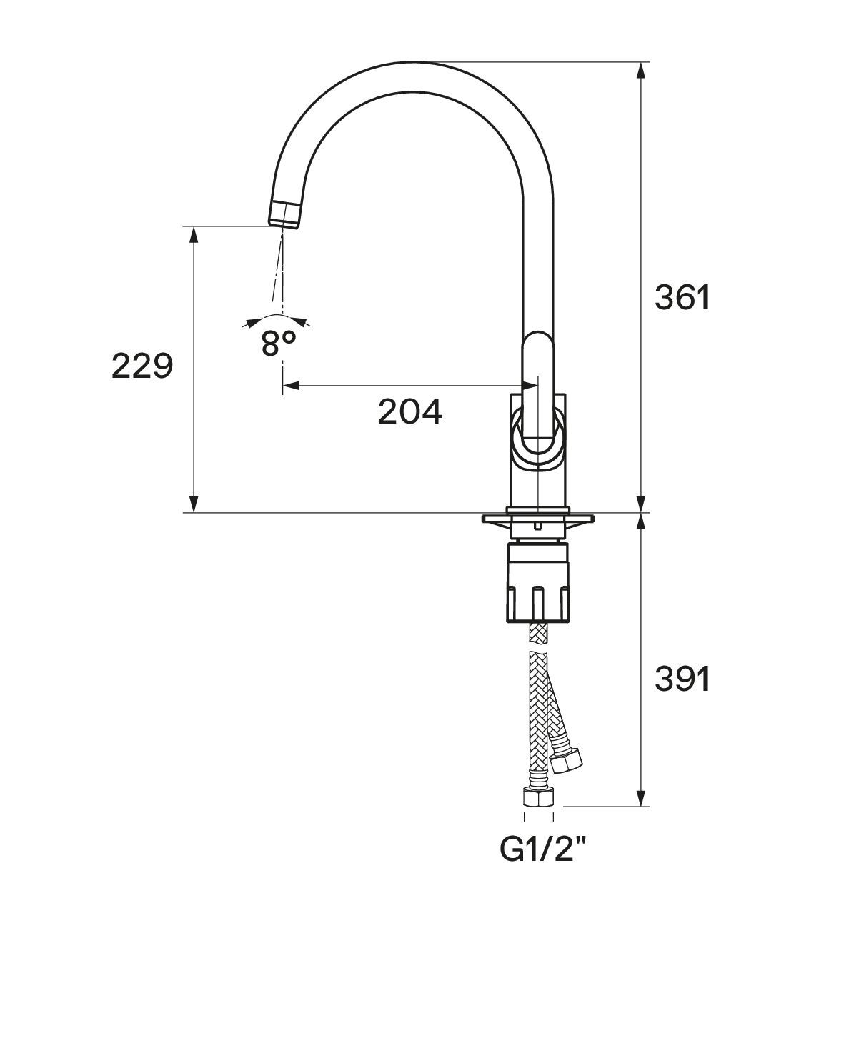 - сверхпрочные шланги гибкой подводки, изготовленные по технологии сшитого полиэтилена (PEX) и увеличенным сроком службы до 50 лет, в оплетке из нержавеющей стали AISI 304.