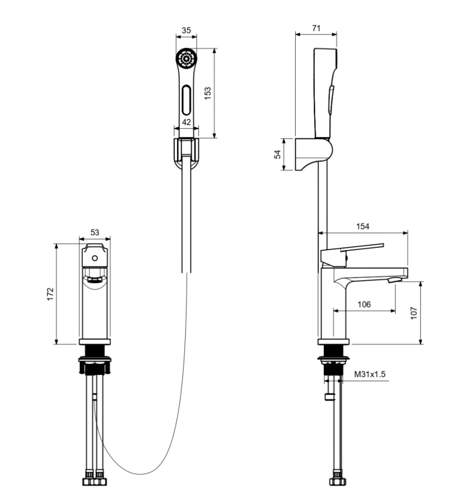 Смеситель Акватек Лугано AQ1712BGM для раковины с гигиеническим душем |