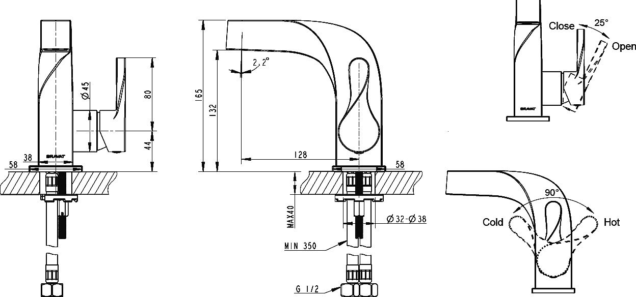 механического воздействия. Короткий фиксированный излив с аэратором