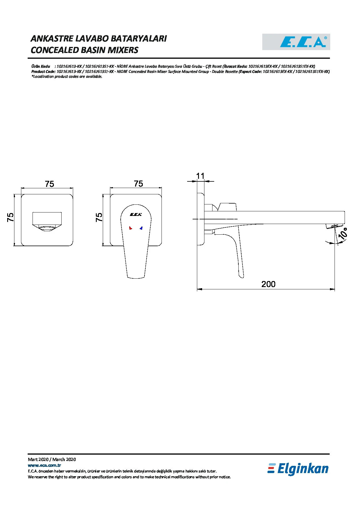 Смеситель E.C.A. Niobe 102167613EX-KK для раковины С ВНУТРЕННЕЙ ЧАСТЬЮ |