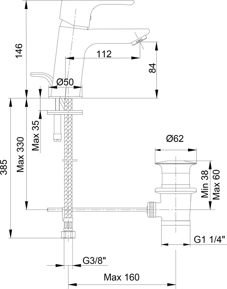 Смеситель E.C.A. Niobe 102188056EX для раковины, с донным клапаном |