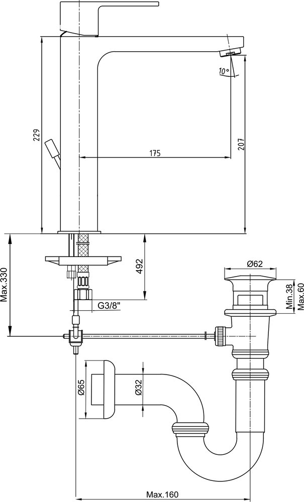 Высота излива: