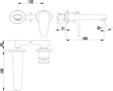 для оснащения раковины в небольшой современной ванной. Внутренняя