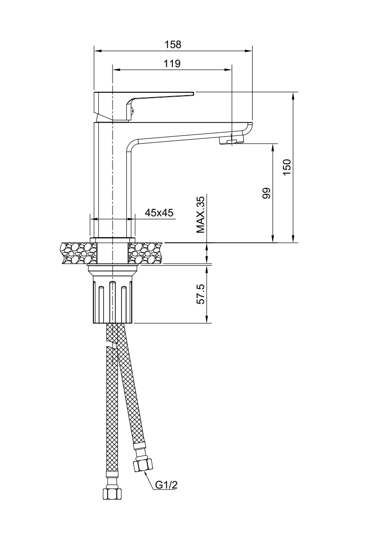 Смеситель Olive'S Navarra 25100NRGM для раковины, оружейная сталь |
