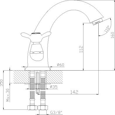 Высота излива, см: