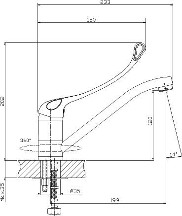 с ограниченными способностями. Поворотный излив оснащен пластиковым