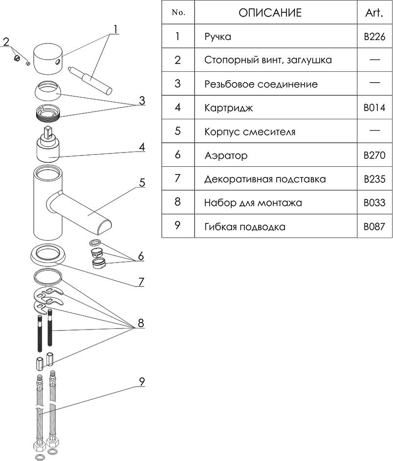Короткий фиксированный излив оснащен встроенным силиконовым