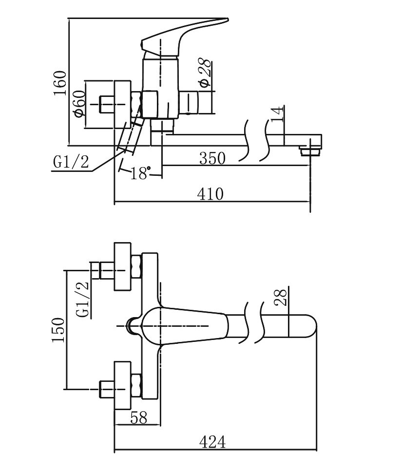 Смеситель Aquanet Static AF330-21C для ванны с душем |