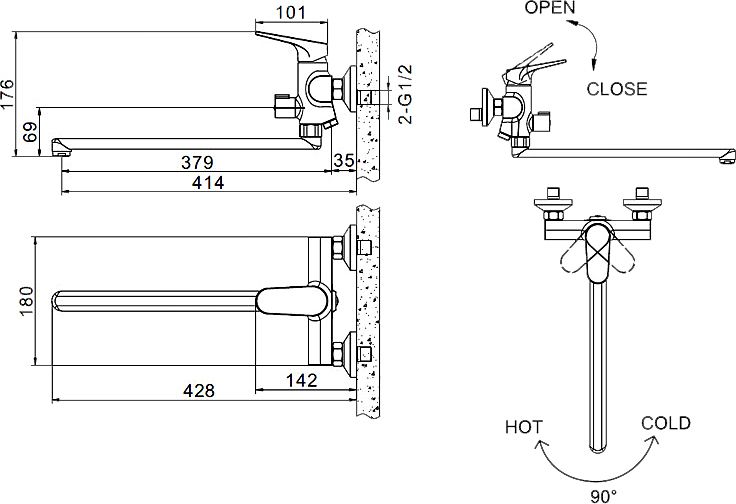 стандартным ванным и раковинам. Корпус смесителя Eler