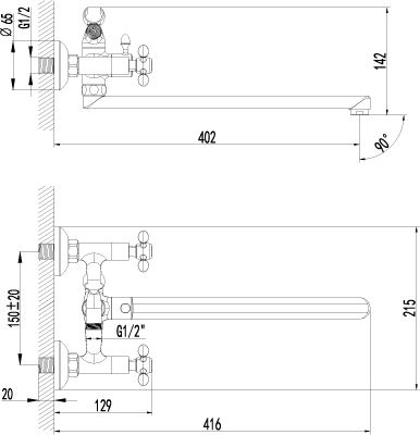 эксцентрики, душевой шланг, душевая лейка, держатель для душа, переключатель потоков