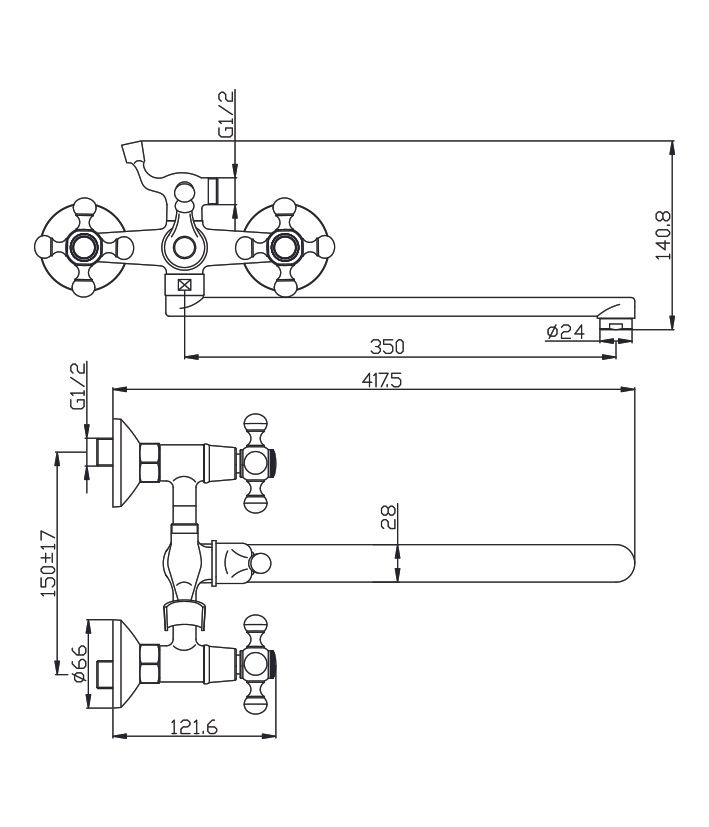 Смеситель Olive'S Girona 01221GR для ванны с душем, с длинным изливом |