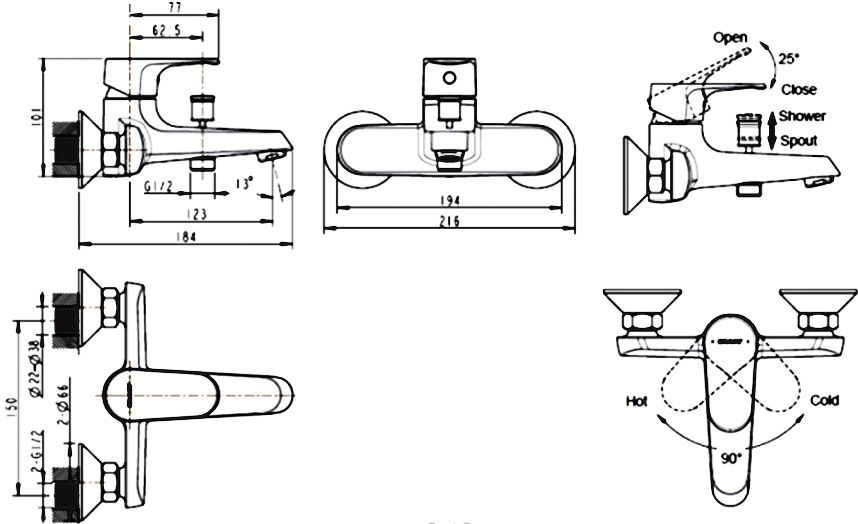 Смеситель Bravat Alfa F6120178CP-01 для ванны с душем |