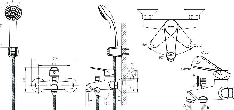 эксцентрики, душевой шланг, душевая лейка, аэратор, держатель для душа, переключатель потоков