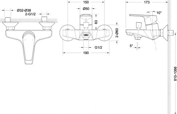 Смеситель Bravat Line F65299C-B-RUS для ванны с душем |