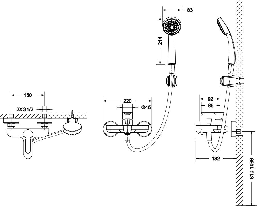 настенный держатель, душевой шланг, душевая лейка, аэратор
