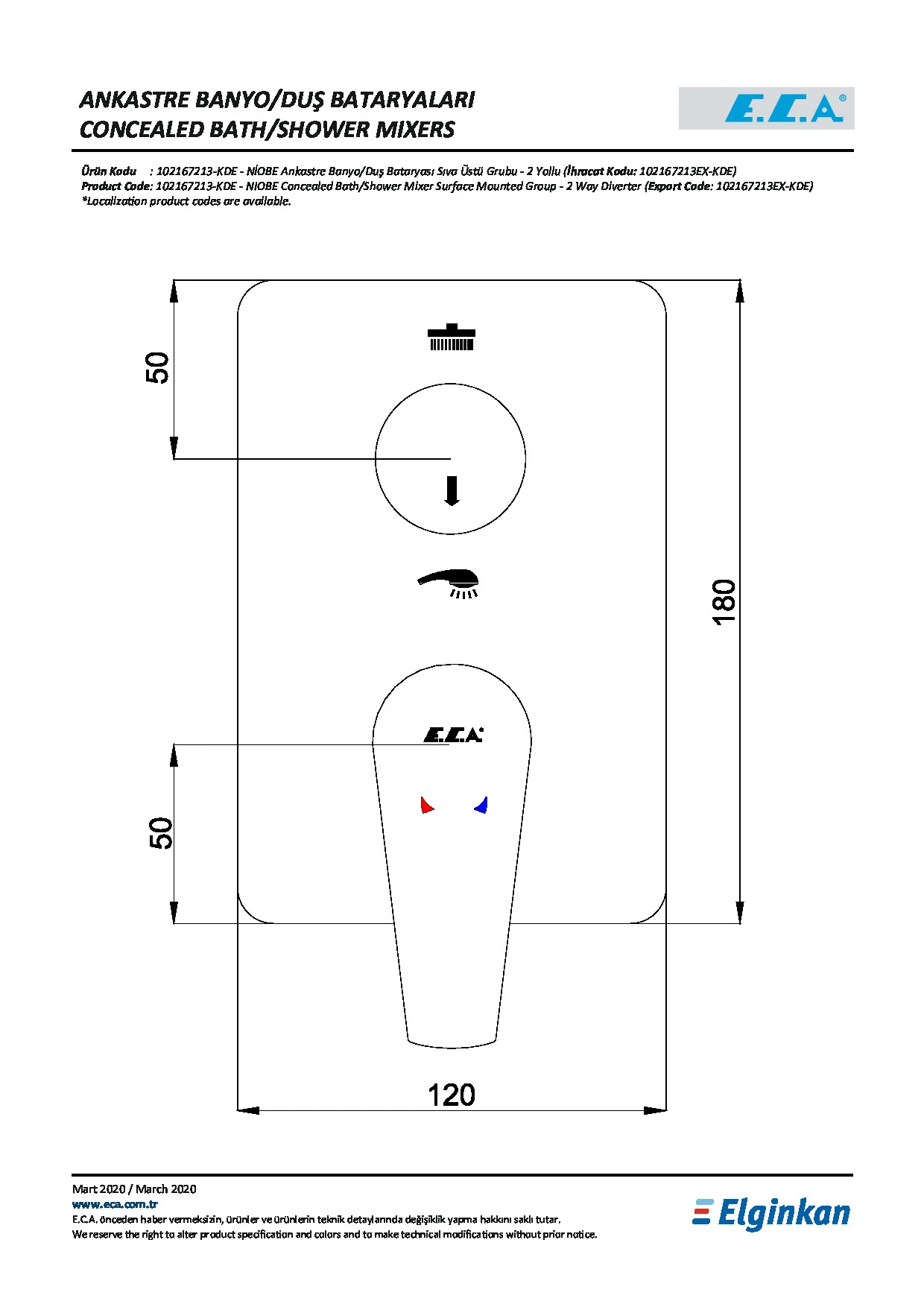 Смеситель E.C.A. Niobe 102167213EX-KDE для ванны с душем С ВНУТРЕННЕЙ ЧАСТЬЮ