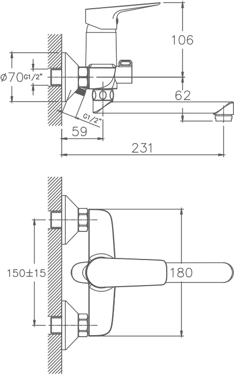 эксцентрики, настенный держатель, душевой шланг, душевая лейка, аэратор, переключатель потоков