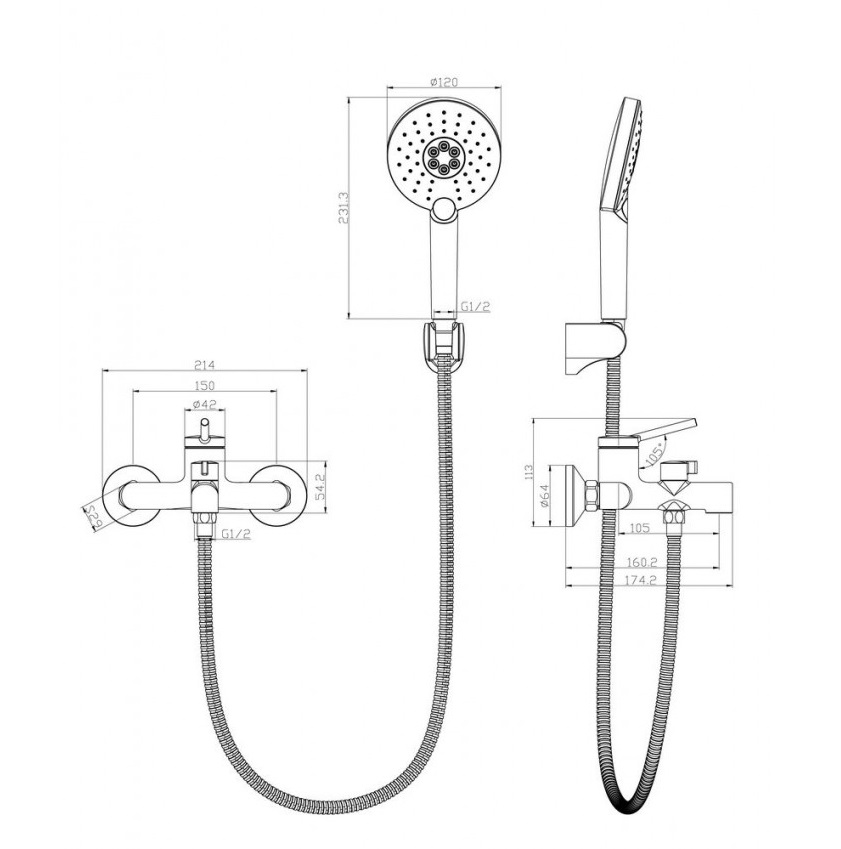 эксцентрики, настенный держатель, душевой шланг, душевая лейка