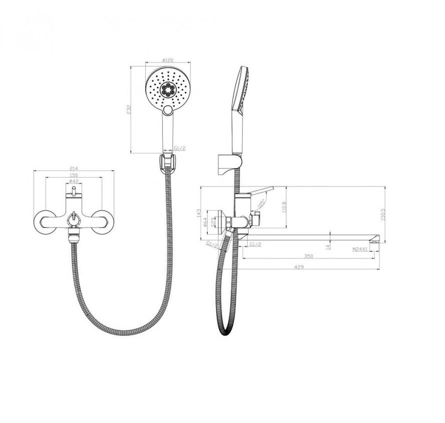 эксцентрики, настенный держатель, душевой шланг, душевая лейка