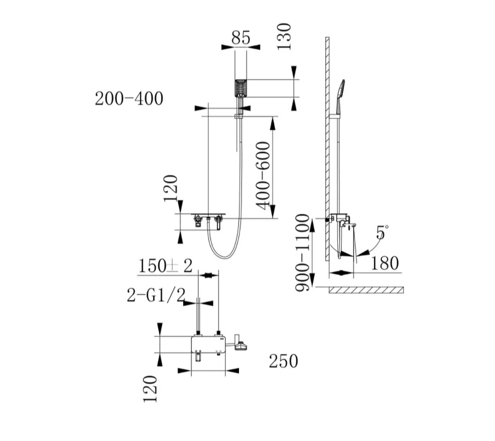 настенный держатель, душевой шланг, душевая лейка
