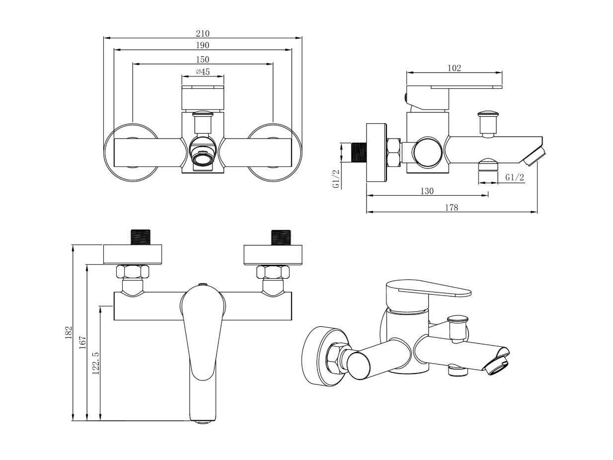 крепления, эксцентрики, душевой шланг, душевая лейка, аэратор, держатель для душа, переключатель потоков