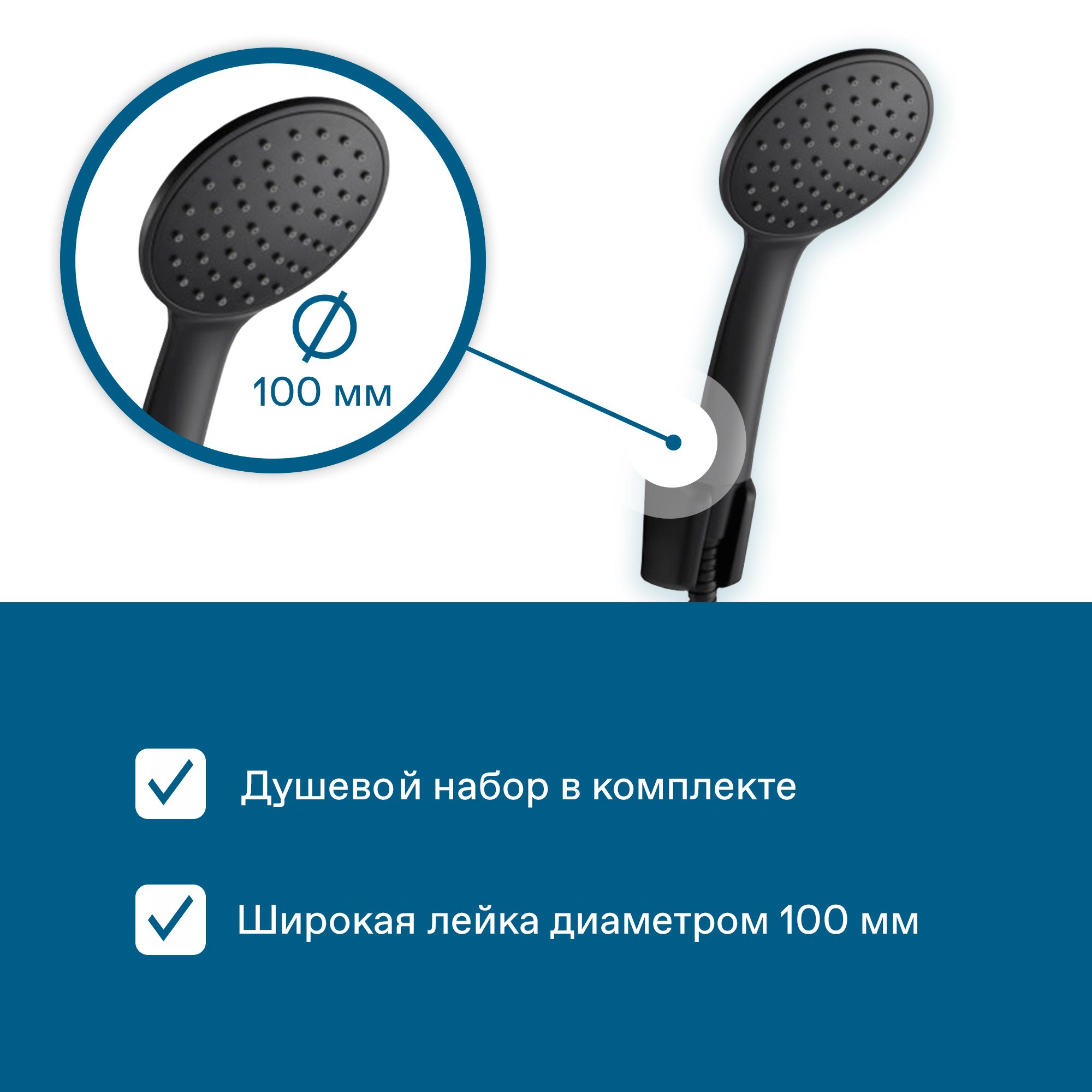 - - душевой набор в комплекте: лейка ø100 мм; шланг 1.5 м, настенный держатель;