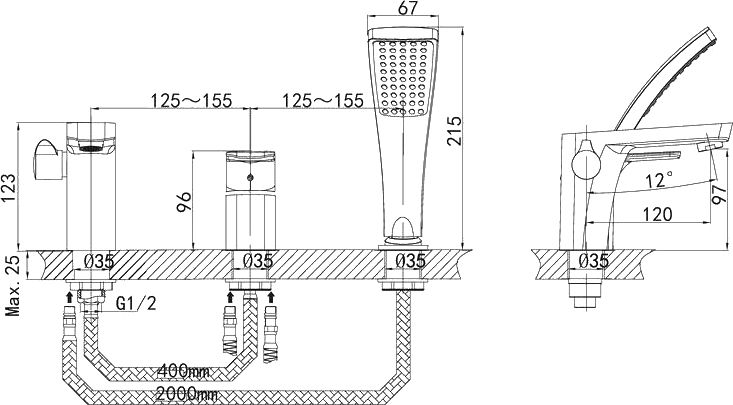 Смеситель D&K Berlin Freie DA1434901 на борт ванны
