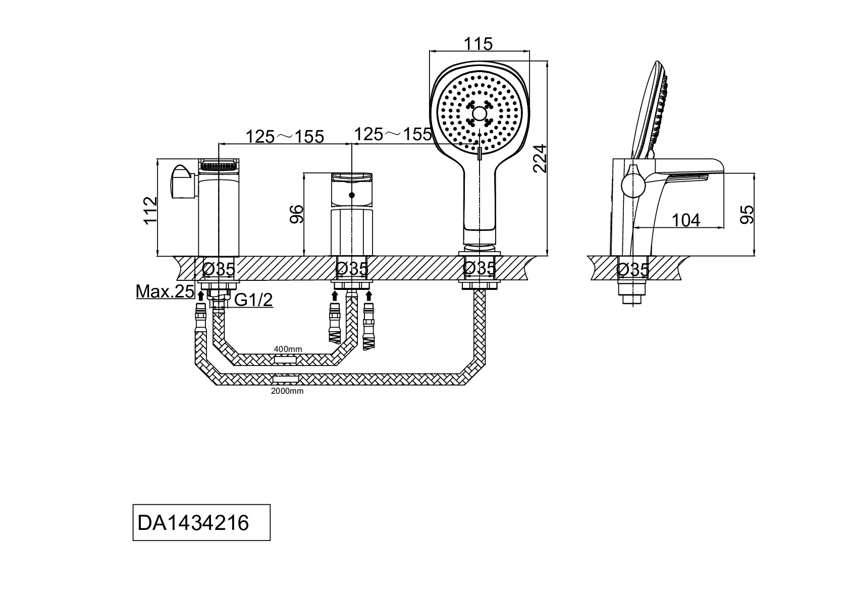 Смеситель D&K Berlin Steinbeis DA1434216 на борт ванны
