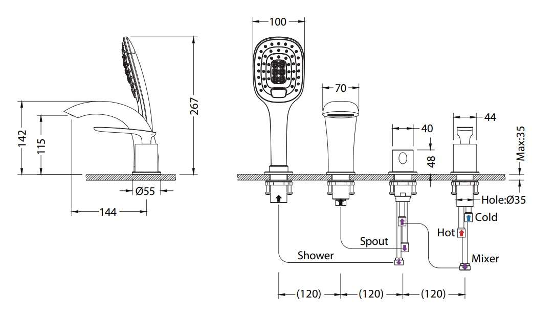 крепления, настенный держатель, душевой шланг, душевая лейка, аэратор, переключатель потоков
