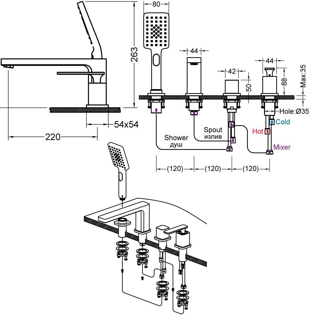 душевой шланг, душевая лейка, аэратор, гибкая подводка, держатель для душа, переключатель потоков
