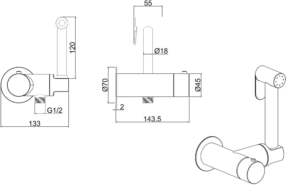 душевой шланг, держатель для душа, шланговое подключение