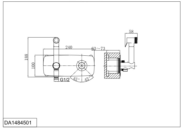Смеситель D&K Bayern Alfeld DA1484501 с гигиеническим душем, С ВНУТРЕННЕЙ ЧАСТЬЮ |