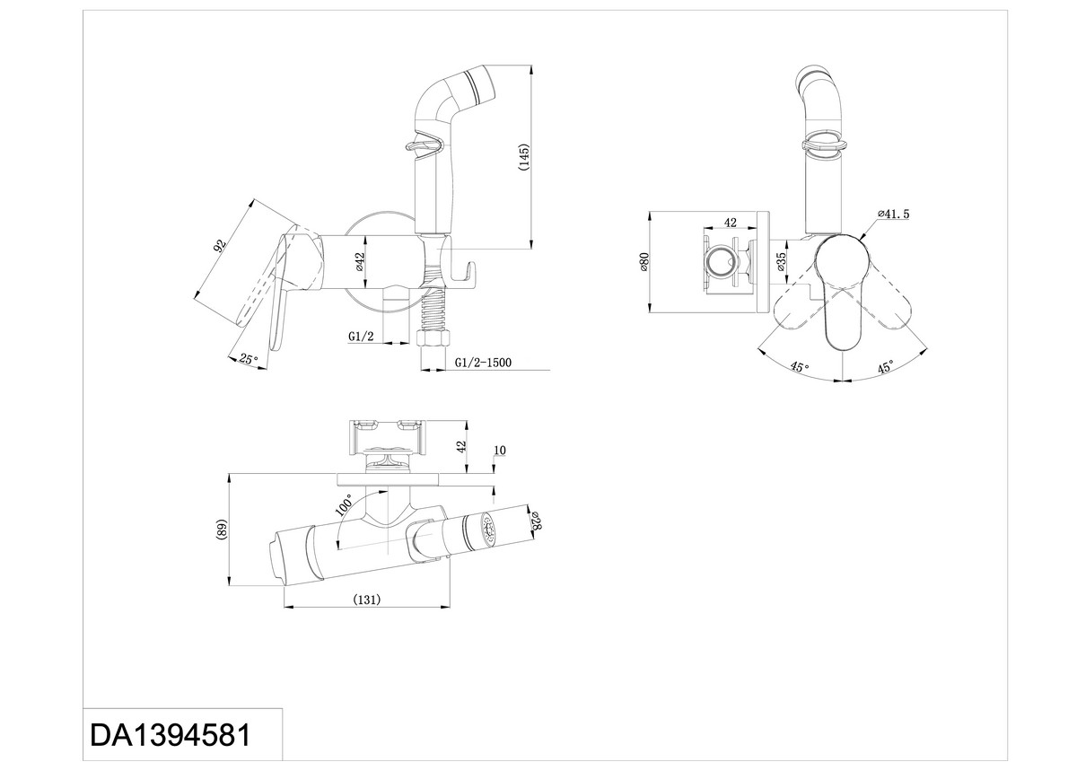 Смеситель D&K Marx Rhein DA1394581 с гигиеническим душем, С ВНУТРЕННЕЙ ЧАСТЬЮ |