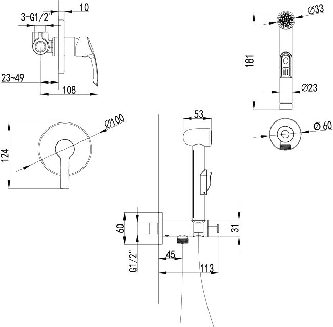 душевой шланг, держатель для душа, шланговое подключение