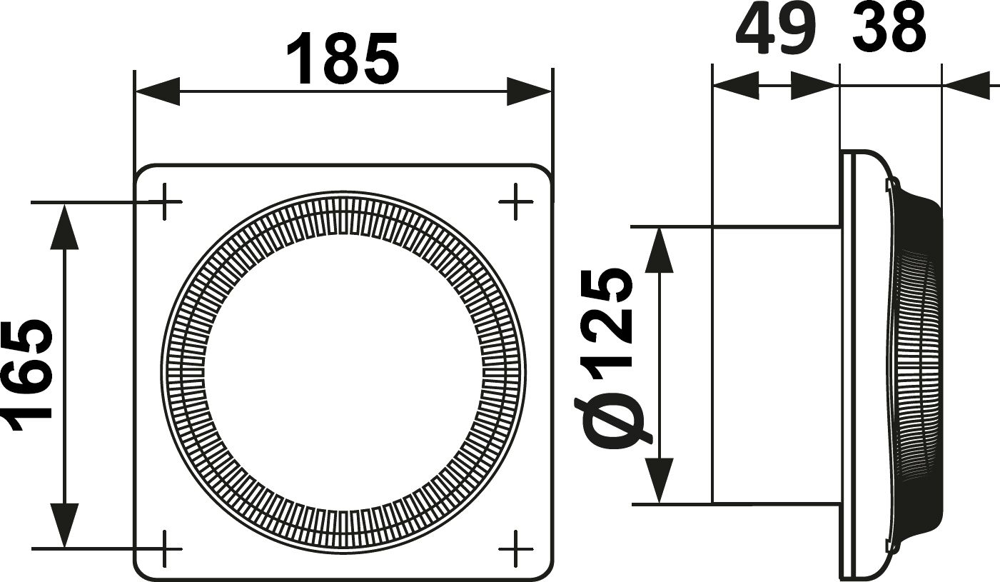 Укороченный посадочный фланец диаметром 125 мм сохраняет мощность