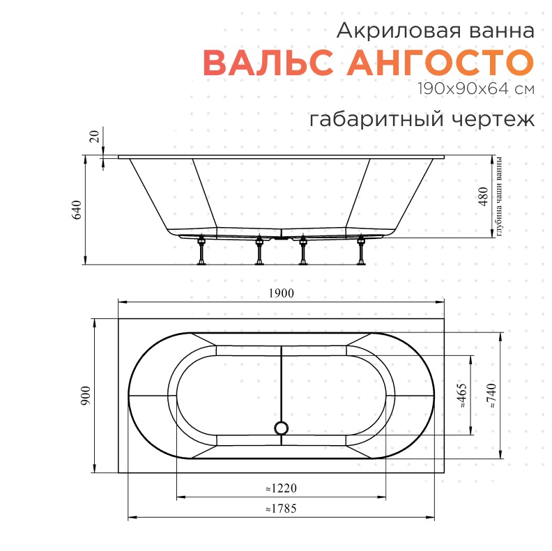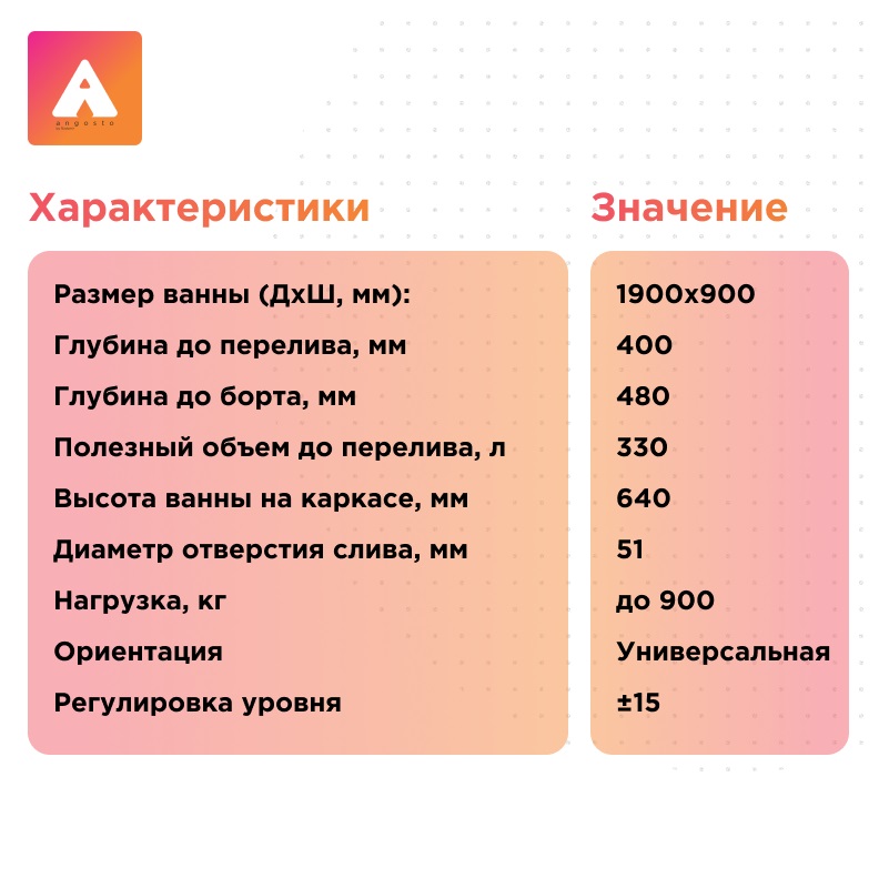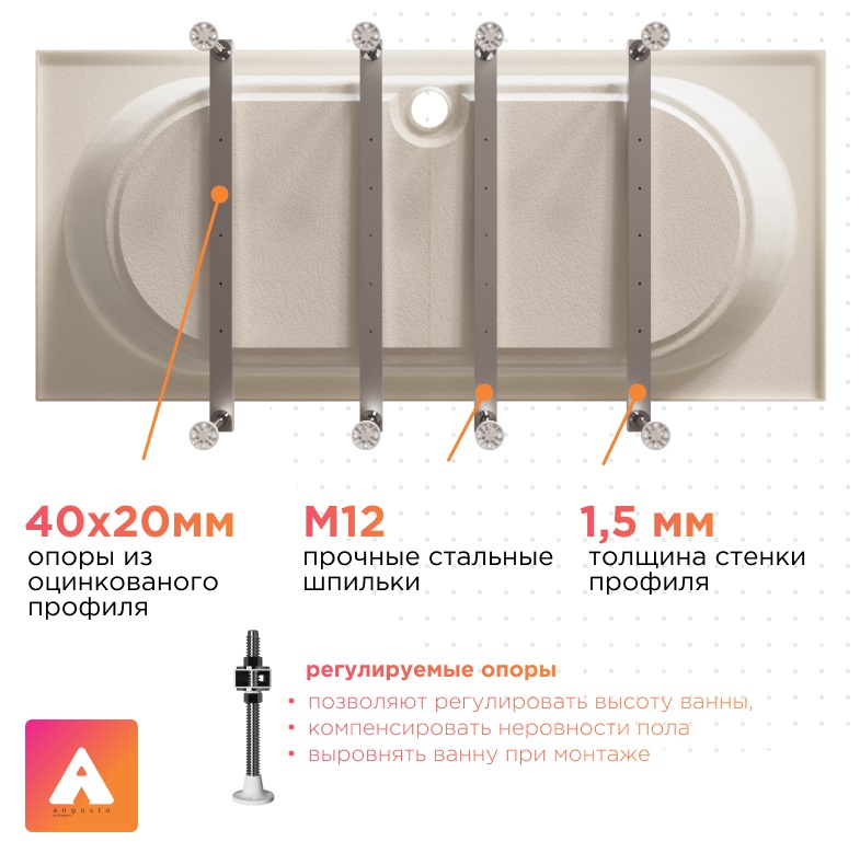 Ванна «Вальс АНГОСТО»— это прямоугольная акриловая ванна с тонким бортом 20 мм, предназначенная для встраивания в нишу или под фартук из плитки.
