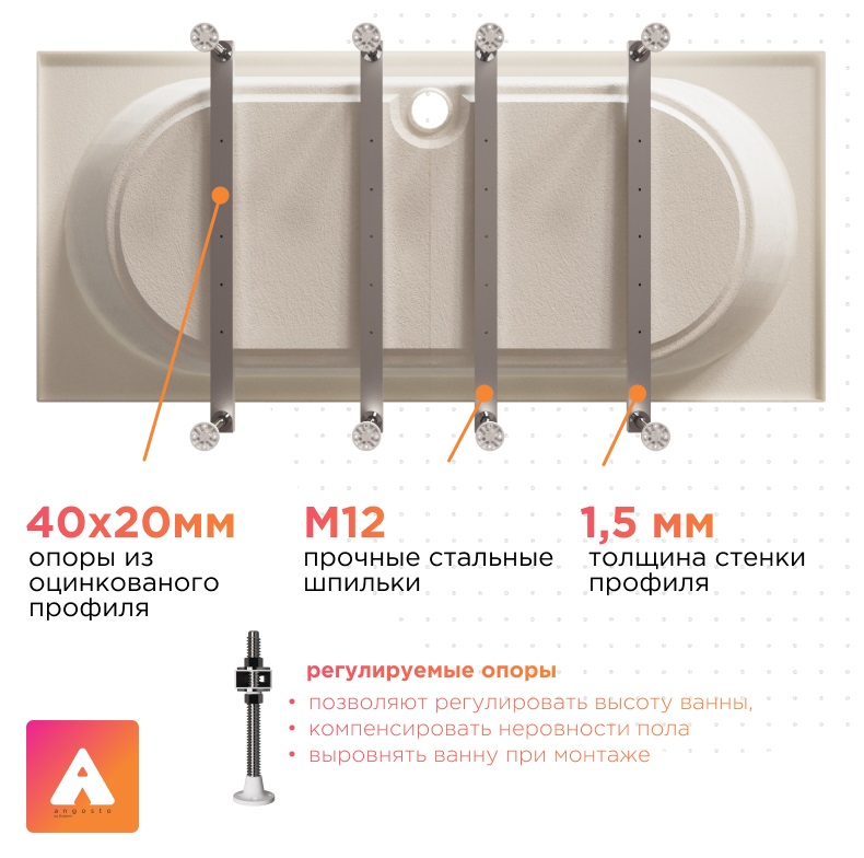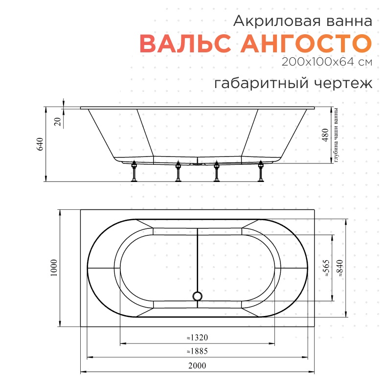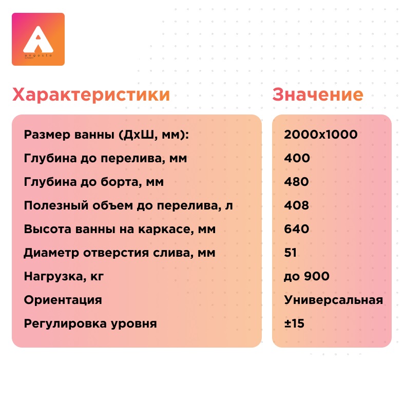 Ванна «Вальс АНГОСТО»— это прямоугольная акриловая ванна с тонким бортом 20 мм, предназначенная для встраивания в нишу или под фартук из плитки.
