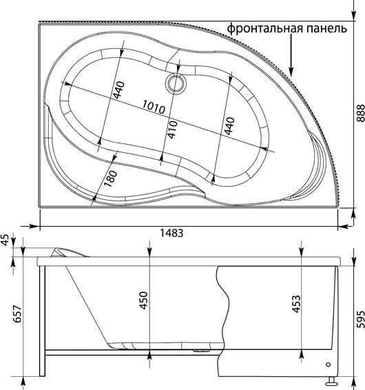 Правосторонняя акриловая ванна