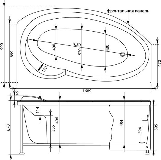 Правосторонняя ванна Aquanet Jersey устанавливается в угол