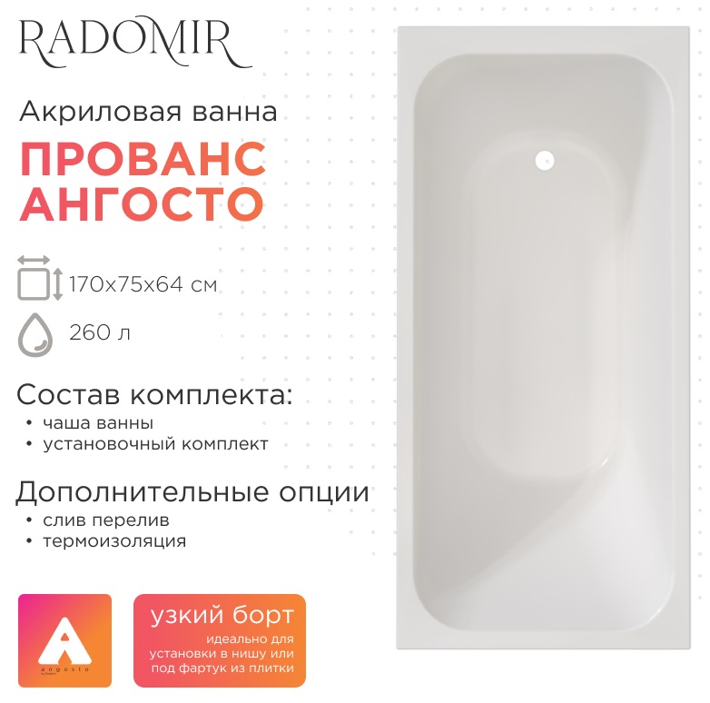 Акриловая ванна Radomir Прованс Ангосто 170x75 |
