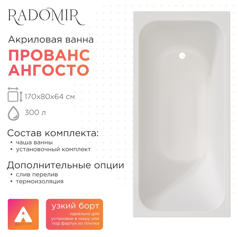 Акриловая ванна Radomir Прованс Ангосто 170x80 |