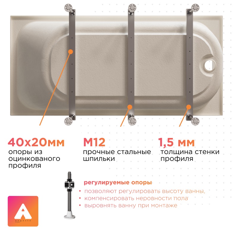 «Прованс АНГОСТО» от Radomir — это прямоугольная встраиваемая ванна с симметричными спинками, созданная для максимального комфорта и безупречной интеграции в интерьер.
