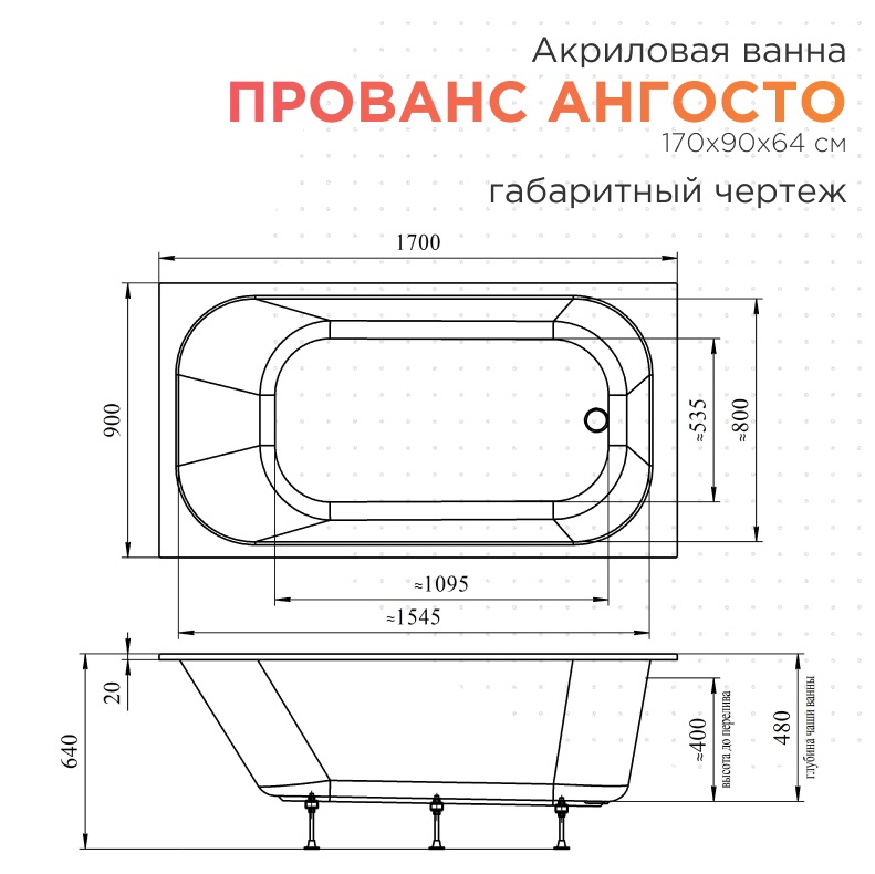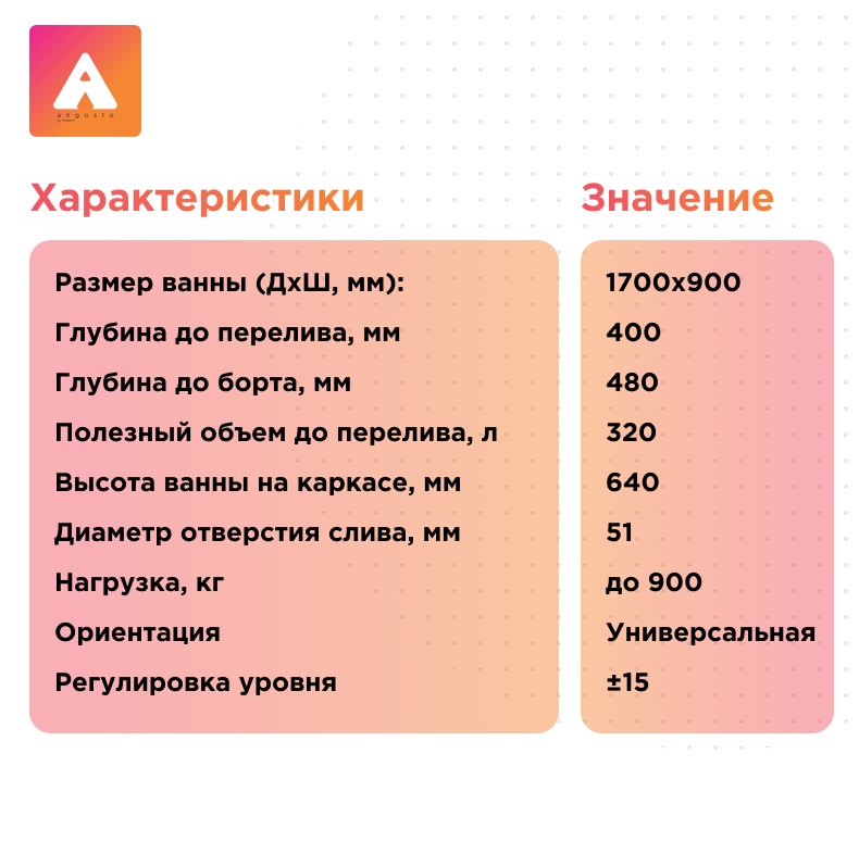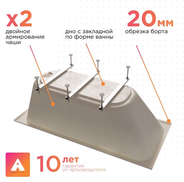 «Прованс АНГОСТО» от Radomir — это прямоугольная встраиваемая ванна с симметричными спинками, созданная для максимального комфорта и безупречной интеграции в интерьер.