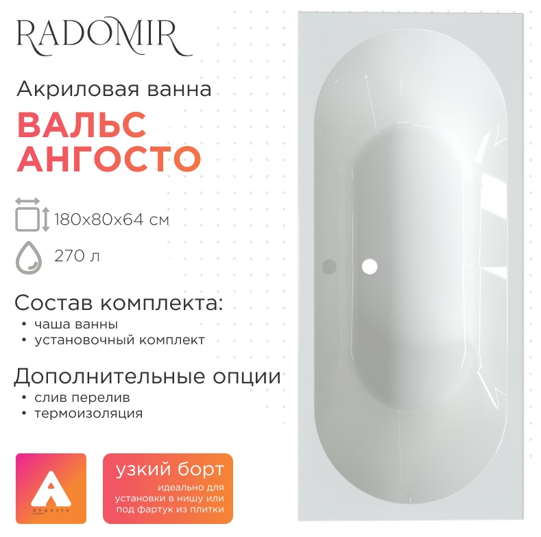 Акриловая ванна Radomir Вальс Ангосто 180x80 |