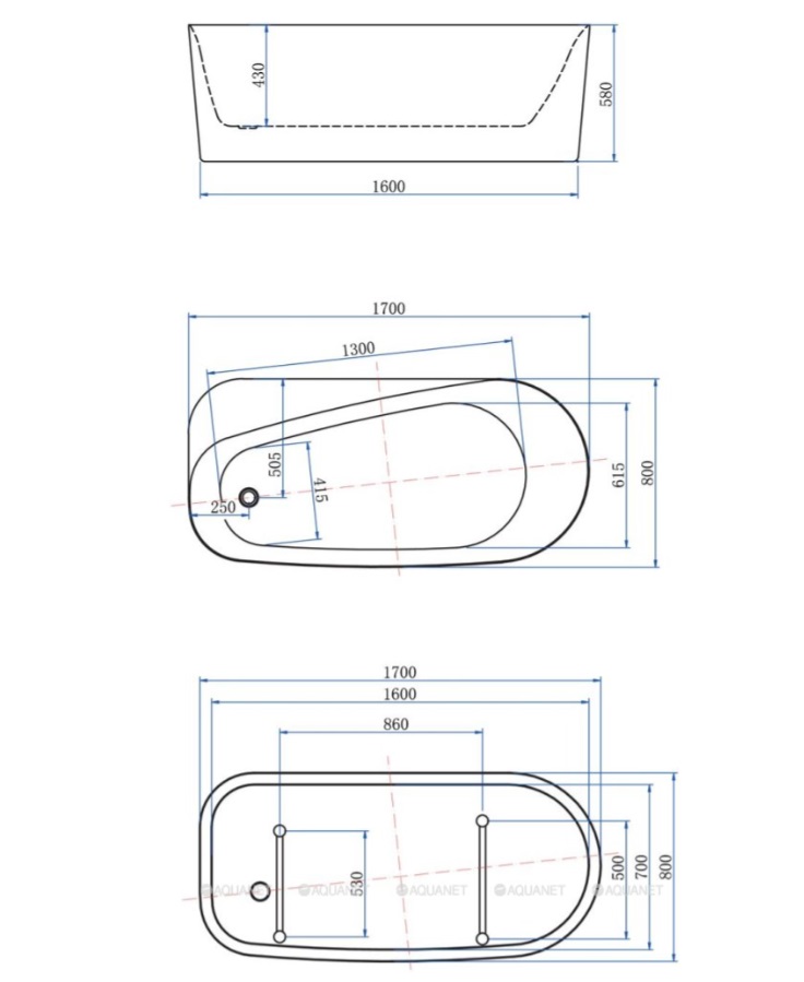 Акриловая ванна Allen Brau Priority 2.31001.21/BGM 170x80 белый матовый, сине-серый 293884 |